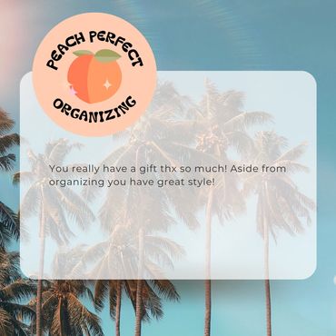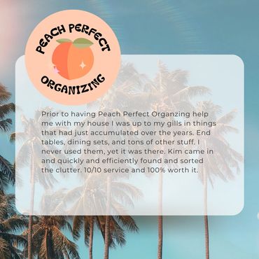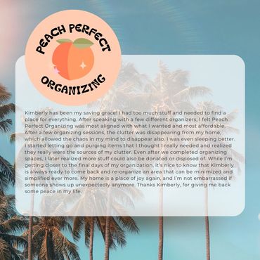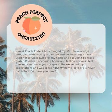 Welcome to Peach Perfect Organizing. I'm Kimberly, and organizing has been my passion since childhood. I've always had a natural eye for creating order, whether it was arranging my toys or helping friends declutter their spaces. As I grew older, I realized that my love for organizing was more than just a hobby-it was a calling. I find immense joy in helping others feel good about their surroundings and teaching them sustainable habits to maintain their spaces. Through Peach Perfect Organizing, I aim to empower my clients with personalized solutions that reflect their unique personalities and lifestyles, transforming chaotic environments into serene havens. Let's work together to discover the joy of an organized life.